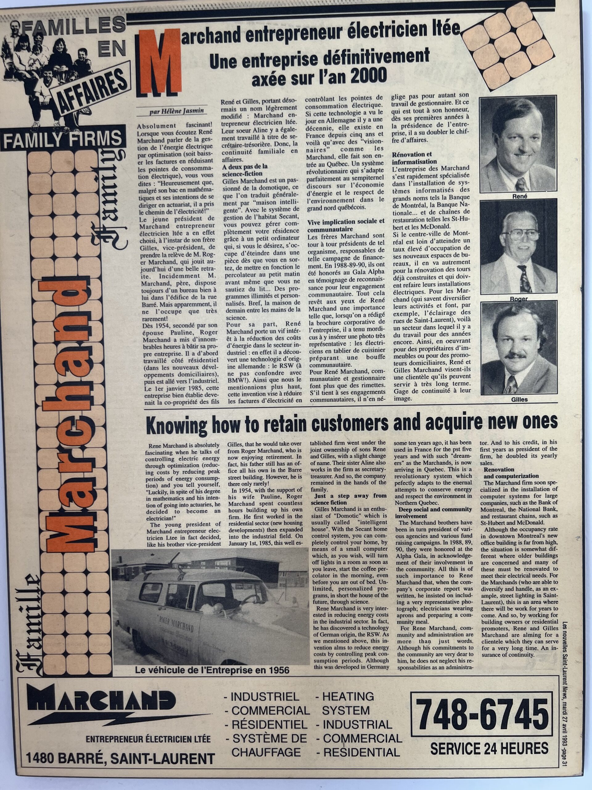 Fondation de l’entreprise par Roger Marchand (anciennement Roger Marchand Entrepreneur Électricien)