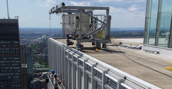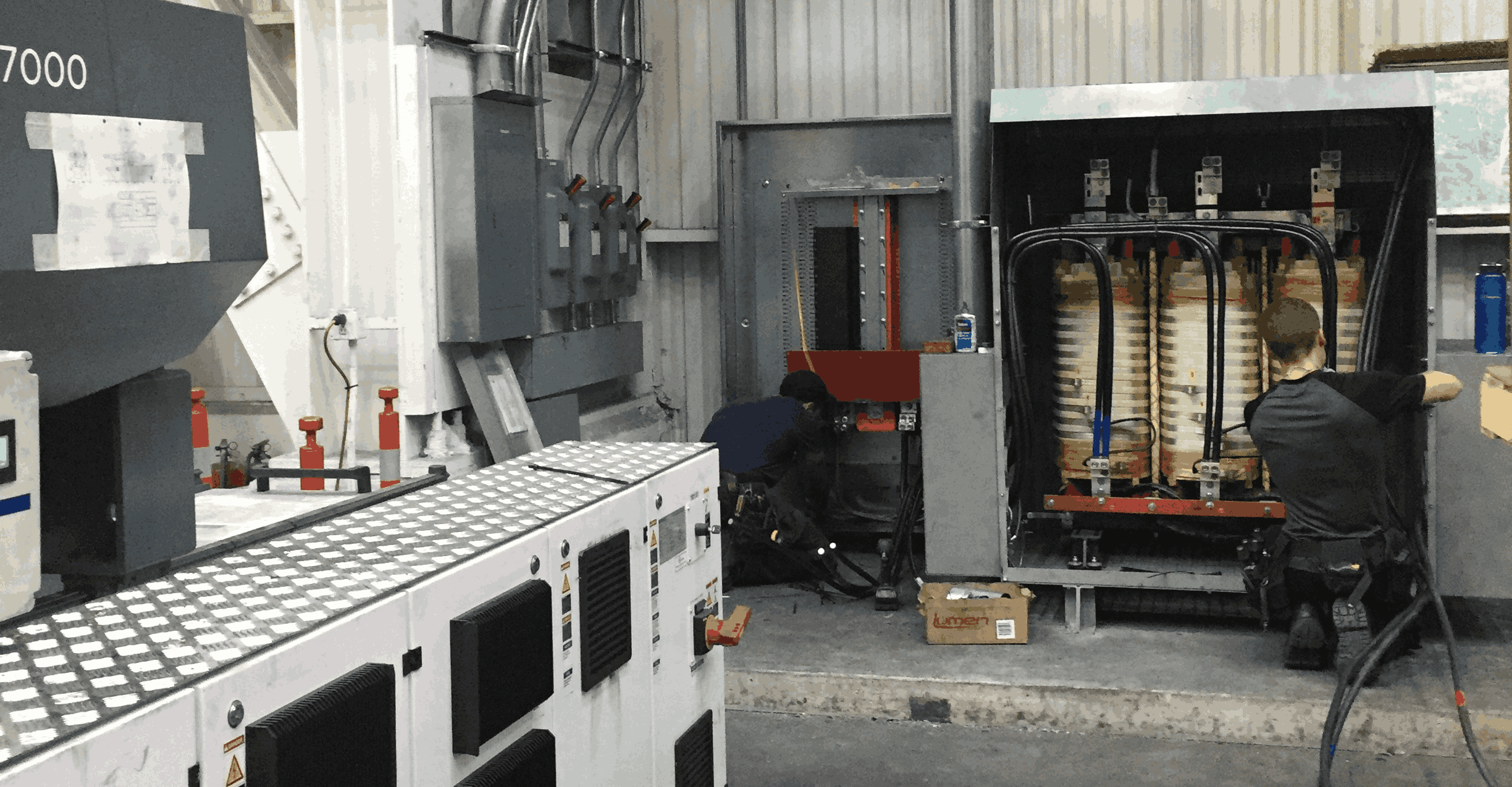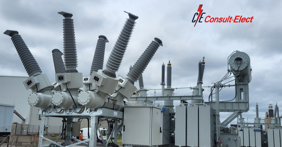 Installation d’un disjoncteur haute tension de 145 000 volts (145 kV).